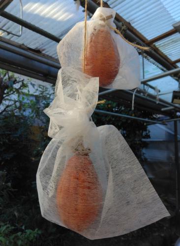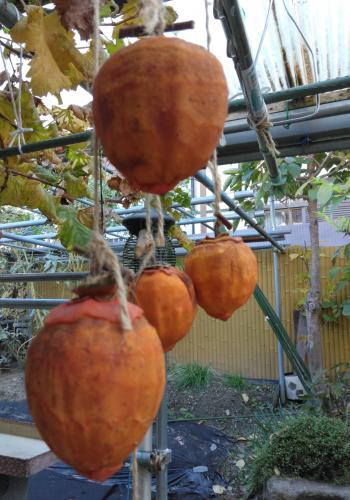 やったやったやったーー! 今年はきれいに干し上がったよ。 最初に干したのはすでにお腹の中。 うーたんの大事なでっかい蜂屋柿もすでにホチャホチャって食べ頃(๑´ڡ`๑) ポトンと落ちないように不織布の袋で守っているの。 明日のおやつに食べるぞー!