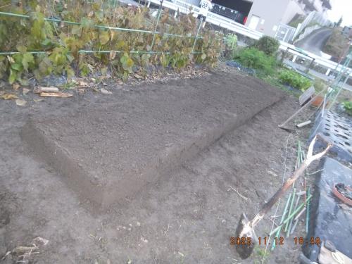 昨日仮畝上げを済ませておいた タマネギ第1畝を完成させました! 200本植え付けする予定 第2畝は今週末に完成予定です