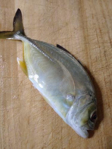 釣果はオニヒラアジの幼魚(メッキ)1匹と手のひらサイズのエソ1匹…