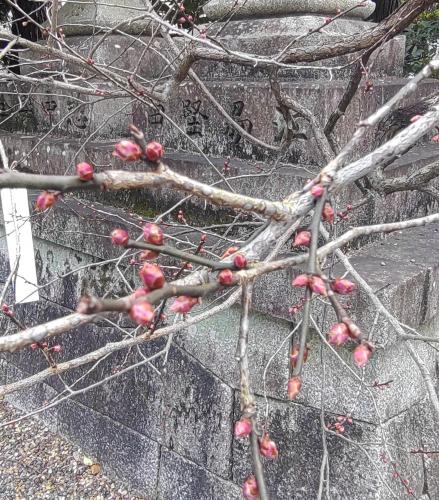 北野天満宮の梅はまだつぼみ