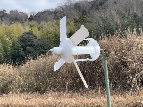 ガムデンタルリンスの詰め替え用の容器があったので、作ってみました。羽根が大きいので、風が弱くても、結構回ります。 チョット、耐久性に難がありそうです。