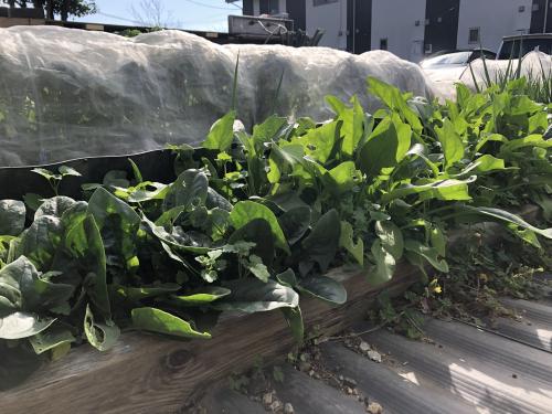 同時に定植した日本ほうれん草より 草丈が高いので先にこちらから収穫。 でも見た目 美味そうなのは日本ほうれん草かな。