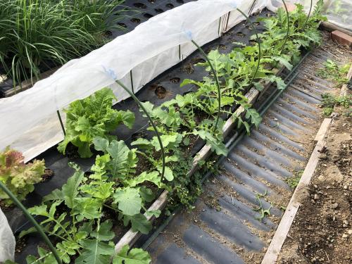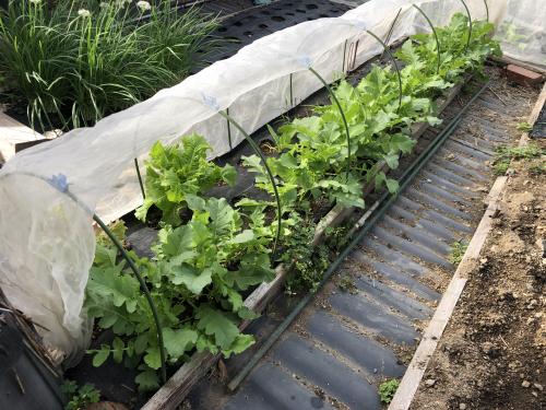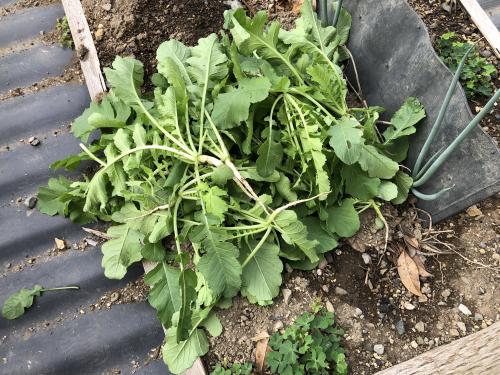 本当は3→2間引きで徐々に間引き菜を楽しみながら作るのが 醍醐味だと思われますが、第一弾は沢庵用に作っているので 一気に1本へ間引きました。 間引き菜は塩もみして浅漬けの元へ投入