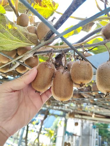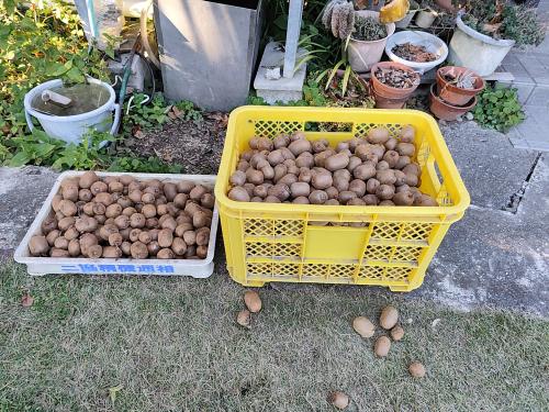 キウイを収穫しました。 初夏に摘果しましたので、卵サイズのキウイになりました。 もっと摘果をすれば、さらに大きな果実になったかと思います。 キウイは、分岐して実がなりますが、分岐の実は一つにしたほうが良いみたいです。 収穫は、豊作でした。