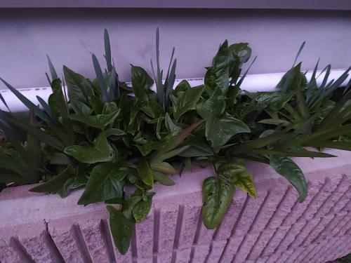 花壇に種蒔きした、ほうれん草を収穫しました。