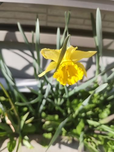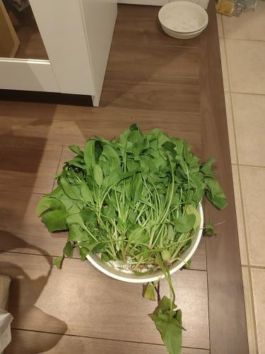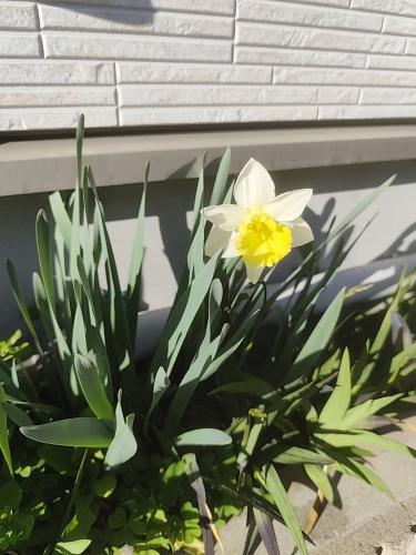 白花の水仙が開花しました。 これは黄花から突然出現した個体です。 黄花より遅く開花します。 ほうれん草を、全て収穫しました。