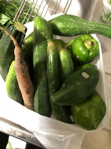 収穫の続きです。 枝豆も収穫しました。他にもきゅうり、ナス、ピーマン、人参、ズッキーニも収穫。 他にもたくさんありましたが、向かいの娘さんにあげてしまいました。
