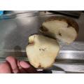 予冷が終わり、室内で追熟したのが9日。だから室内では9日経ってる。それで熟し具合を見ると、果梗付近が少し柔らかくなっている。また、大きな黒っぽい班もでだして、これは大丈夫と判断した。切ってみると確かに少し柔らかくなったのがわかる。りんごより...
