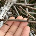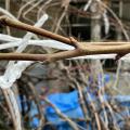 これにも小さめの新芽がある。太く結構伸びているも、小枝も無い役に立たない(ただし、しっかりした枝がほとんど無い株のため、期待をかけて切らずにいた)徒長枝を、水平に曲げてひもで止めておいた。少しだけ新芽がある。春から、この位置から枝葉が出てく...
