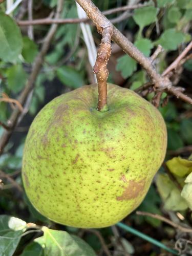 明日か明後日に収穫したい。今年はうちの家にしては上出来なサイズのラフランスがついた。しかし果物屋で買うならこれでもMサイズかと思う。