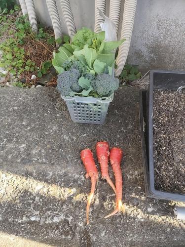 ブロッコリーを収穫しました。 トウ立ちした白菜を収穫しました。 金時にんじんを収穫しました。 にんじんは初めて作りましたが、小さいです。 またリベンジします。
