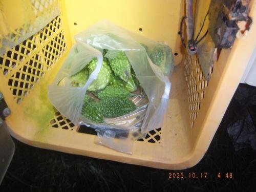昨日収穫した最後のゴーヤを大量に詰め込み 100円で販売しました!