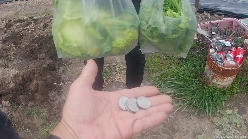 夕方に常連さんが来園! ミニキャベツ ロマネスコ ナバナを購入していただき 400円の臨時収入がありました