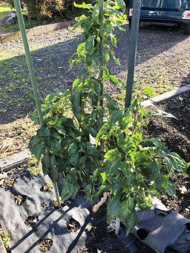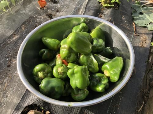 今年は活着が悪い株が1株、生育は良好が2株。 上記すべて高温で生育障害が出ていた模様です。 ナスのように枝ごと収穫するようになってからは挽回しました。