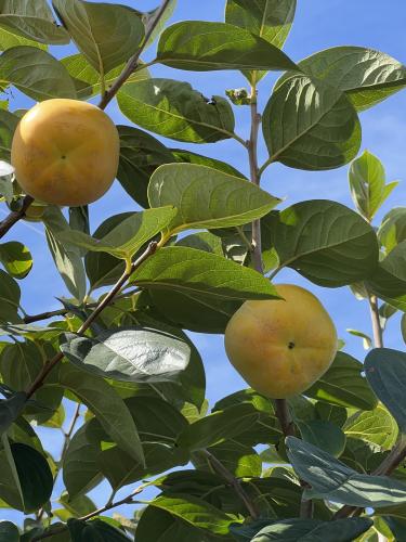 今朝、最後の農薬散布をしてきました。 太秋は収穫できそうなものが少しあります。 試しに1週間前に味見をしましたが甘い部分で糖度20度を超えたくらいです。 全体が甘くなって、販売するのは10月10日くらいを予定しています。 カカシを3体設置して、木の上に鳥よけの糸も張ってきました。