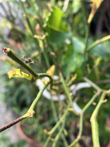 秋になり新芽が出た。だいぶ遅い。開花は年内には無理かもしれない。