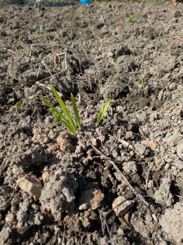 土壌改良のつもりでばらまいた麦の穂に小麦が付いていたらしい…それも結構な数。 通路の雑草とあわせてむしってぽいしといた。 とりあえず麦が発芽できる土壌にまではなってることはわかった。