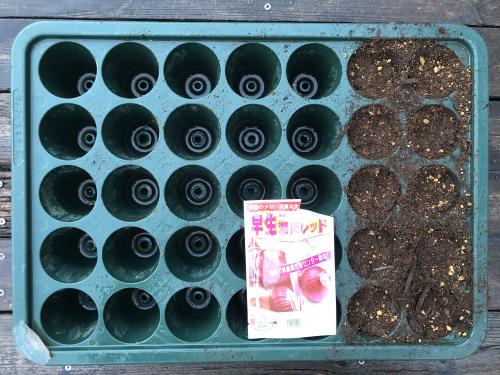 うちの連れが今年 紫タマネギをよく食べていて 「作れ」と言うので急遽紫タマネギを作る事にしました。 長期間食べたいとの事で早生種と晩生の2種作ってみる 事にしました。今日は湘南レッドの種まきです。 この割り当てでほうれん草を作るところが 無くなってしまいました。考え無いと、汗