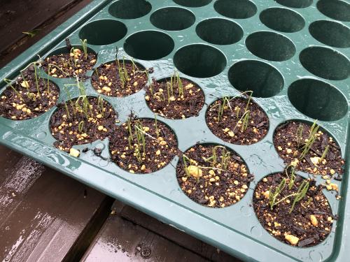 タマネギって発芽するのに時間がかかるんですね。 そんでいて すんげー細いし。全部大きくなって50本くらい。