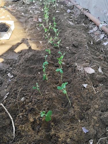 2025.12.16に種蒔きした、グリンピースの苗ができましたので、畑に定植しました。 60粒種蒔きして、45株できました。