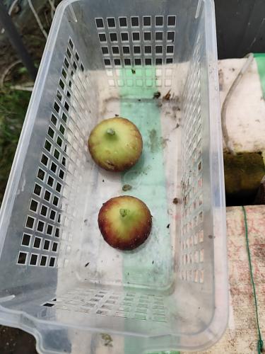 いちじくを収穫しました。 10/21✕2個 10/23✕2個 10/27✕2個 10/30✕3個 合計の収穫は、100個です(祝)。 いちじく、飽きましたので、ご近所さんにあげました。