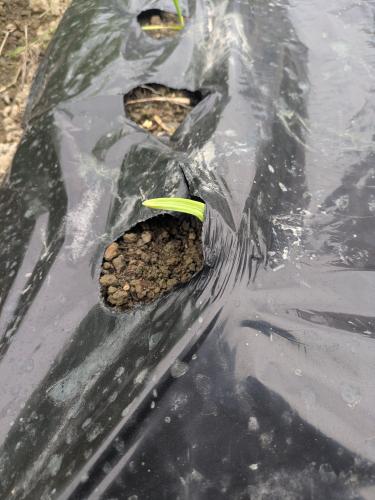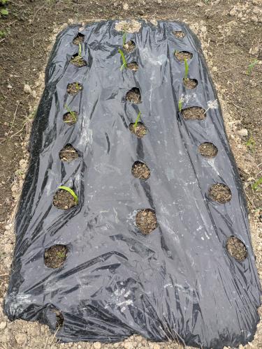 雨やら息子達のインフルエンザやらで行ってなかったら気付けば半月近く畑に行ってませんでした苦笑 まぁ古い畑はもう植えられないし 新しい畑は石灰まいて落ち着くまで何もできなかったし 何かにつけて誰にかわからないけど言い訳 w まっすぐ植えたのになぜかマルチの穴の横が盛り上がってるのが数株 発芽は6割くらい。やっぱり芽出ししとけばよかったな…もうしばらく待ちますが