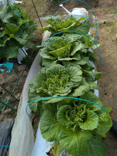 10日程前に虫が多すぎて結球を向いた白菜だったけど、また負けじと巻いてきた♪ 穴まみれの葉だけれど、前まで芯側の白い葉が緑になって外葉を新しく形成している… 虫も減ったし中からいい葉が結球してくれたらいいのだけど…どうだろうなぁ