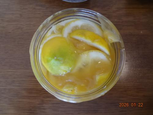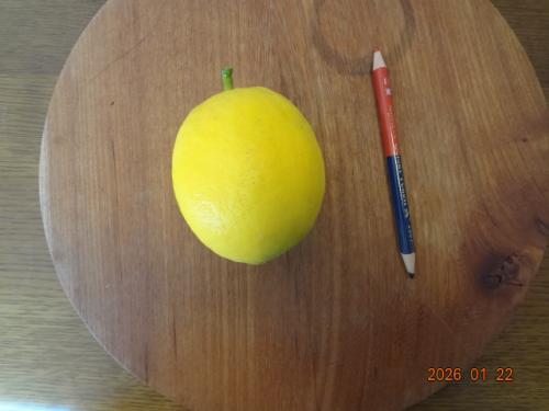 マイヤーレモン、収穫しました。大きい果実が1個です。ハチミツ漬けにしました。