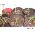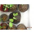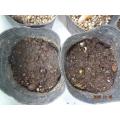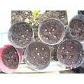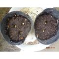 スナップ、播種4日目の様子。どのプラ鉢も発芽しているようです。ウスイエンドウも発芽しているようです。