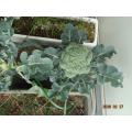 グリーンパレス、播種115日目の様子。一握りずつ、固形有機肥料を追肥しました。頂花蕾が確認できます。