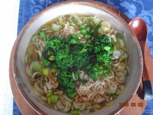グリーンパレス、側花蕾5個収穫。昼インスタントラーメントッピング。