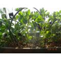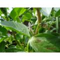 ソラマメ、播種40日目の様子。下の葉が枯れるのは、黒いハダニのせいだと思います。アーリーセーフが効かないので、水で流すか、手で取っています。