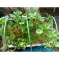 ソラマメ、播種28日目の様子。赤ソラマメは、本葉4,5枚で側枝が出てきました。今日はソラマメも寒そうです。