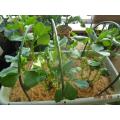 一寸そら豆、播種41日目の苗。発芽が遅かった苗を2個、捨てずに鉢に移植しました。