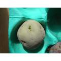 ジャガイモ、芽出し16日目の様子。リビングの窓際です。小さい芽が見えます。