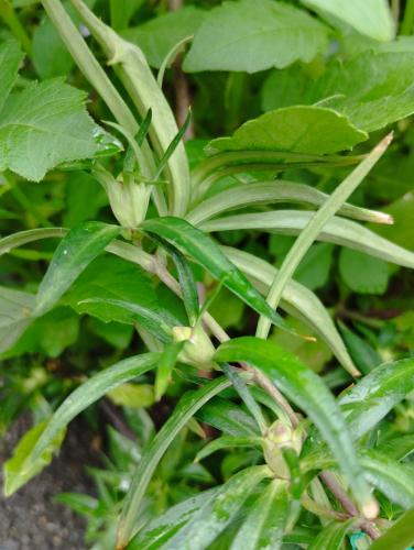 たぶん花芽と思われるものを発見。ようやくだ。五月くらいに挿し芽して、よく失敗したが、2鉢のみ生き残った。元苗も2鉢あり、合計4鉢。この鉢に咲く花色は赤紫なので、一般的なリンドウの花色である濃い青(瑠璃色)の花が好きな自分は正直言えばいまいちだと考えてる。が、いっときは全滅しかかったくらいだからいきさつを思えば感慨深い。