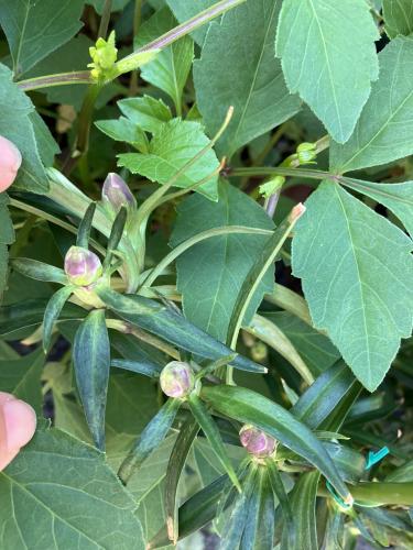 これはピンク系の花の株なので好みではない。でも割と苦心して育ててきたつもりだ。だからつぼみがつくのは本当に喜ばしい。特に挿し芽からのこの2株は期待してなかっただけに、咲くのはひときわうれしい。