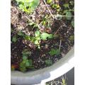 余ったソラマメの苗を自宅のプランターに植付しました。その時には気付かなかったのですが、本日観察していると、ハコベと思っていた雑草は、どうも違うようです。この形は金魚草?イヤ、金魚草だよ。