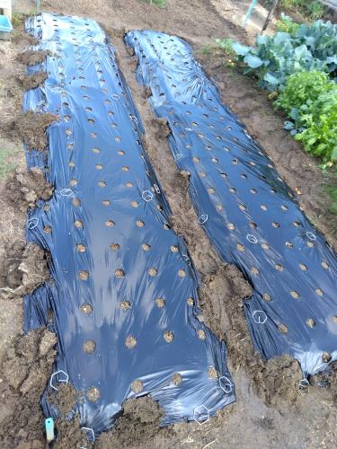 昨日はタップリと降水がありましたので、タマネギ用のマルチをセットしました。 明日、育苗組を植付する予定です。
