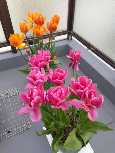 盛りが過ぎつつあります。特に手前は花びらが垂れ下がっているのもいます。奥の方は、まだ絶えている感じです。