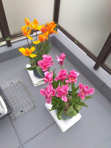 本日は安全祈願として川崎大師京都別院笠原寺に行って、災厄消除と会社の工事安全を祈願して御札を貰ってきました。横浜に住んでいた頃は大本山川崎大師平間寺で祈願、大阪に戻ってからは毎年笠原寺で祈願しています。写真はありません。 祈願中の太鼓の重低音はお腹に響きます。本堂のふすまもガタガタと響いていました。 ベランダのチューリップ。 もう、終わりだね、花びらが垂れて見える。
