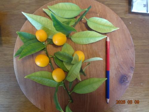 寧波キンカン、5個収穫しました。大きめの果実です。