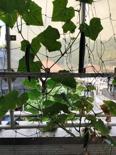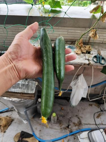 水耕栽培のキュウリを2本収穫しました。 合計の収穫は3本です。