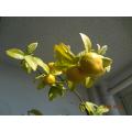 シークワーサー、ほぼ満開です。レモンのような香りがさわやかです。遠景は黄砂で山並みは見えません。