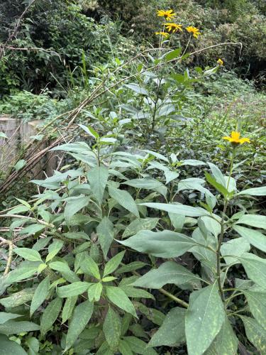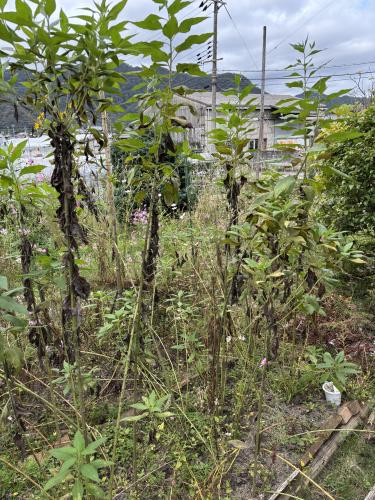 たくさん植えていた菊芋は夏に白絹病になってほとんど枯れてしまいました。生き残った株です。