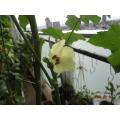 オクラ日記、2個収穫、累計105個。2輪開花。