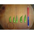 オクラ日記、5個収穫、累計143個。1輪開花。