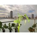 オクラ日記、2個収穫、累計134個。1輪開花。