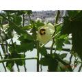 オクラ日記、4個収穫、累計121個。9輪開花。