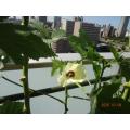 オクラ日記、1個収穫、累計101個。1輪開花。